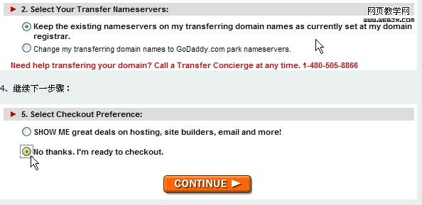 3、选择你的域名DNS服务器:选择保持原有DNS服务器不变,等域名转移成功后,再更改DNS服务器,这样在转移注册商的过程中,域名解析是不会有任何中断的。