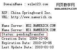 我的域名提交转移后,5天前查询域名WHOIS状态:PendingTransfer(正在处理中) 原注册商是namerich:
