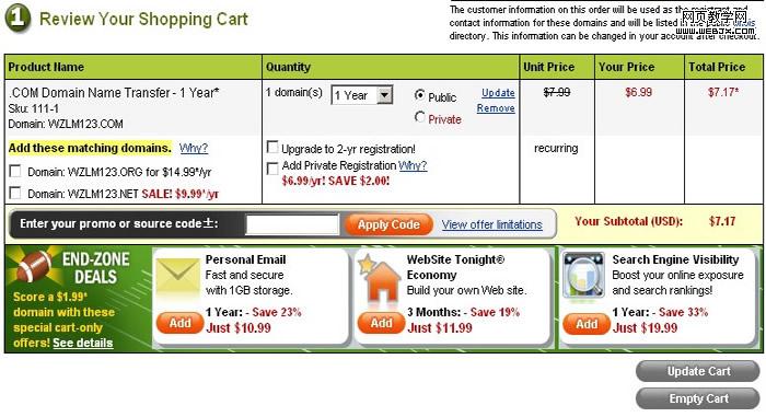 5、选择是否定制购物车,其实就是godaddy推销它的一些服务,点击“No thanks”