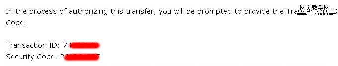 8、接受确认邮件。付款后,godaddy 会给域名所有者的邮箱发一封电子邮件,邮件告知域名转移的Transaction ID和Security Code。注意了,GD是把邮件发到域名WHOIS中的邮箱,不是注册GD会员填写的邮箱。