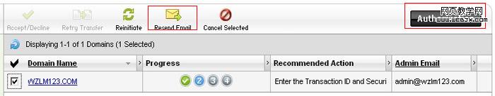 如果你没有收到godady的确认转移域名的Emai,可以点击“resend email ”图标,再次发送确认邮件。