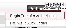 10、授权转移。勾选你需要转移的域名的前面的复选框,然后单击“Authorization”(授权)菜单下的“Begin Transfer Authorization”项。