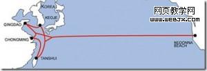 中美之间的网络电话等数据传输毫无疑问得通过跨域太平洋的海底光缆来进行。目前中美之间有两条直达海底光缆,一条是China-US Cable Network。