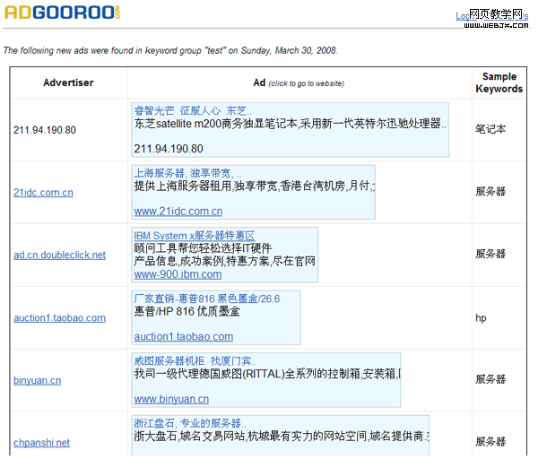 当我们的竞争对手或者其它广告主使用我们的商标做为关键词发布广告,就可以在最短的时间内获得预警信息。