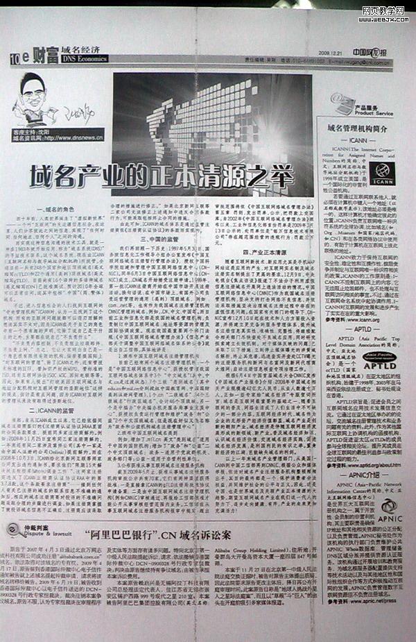 下周一,2009年12月21日《中国网友报》第10版的“域名经济”专版将登载本人专文,标题是《域名产业的正本清源之举》,