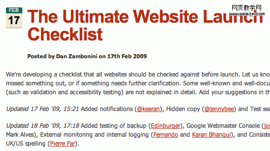 pdf版本的也不错,这个检查列表是一个很有用的参考,一量你的网站已经发布,它可以在你每天的工程中帮助你以及预防一些失误和错误。