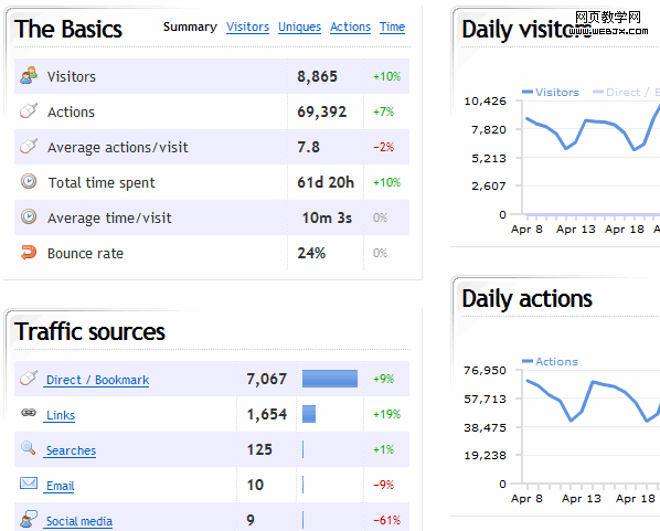 安装几种分析工具对于测量统计你的网站是怎么运行以及它是如任何进行转换的是重要的。跟踪每日独特访问,每月页面浏览和浏览者统计,从第一天开始,跟踪所有有用的数量。google分析是免费的,当然你还可以考虑其它的: Clicky, Kissmetrics,Mint 和 StatCounter.。