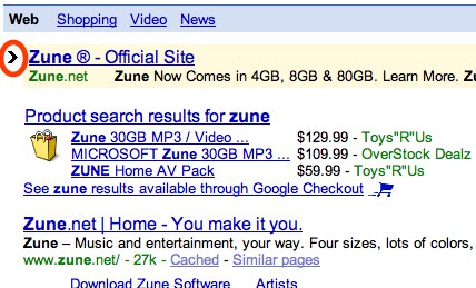 对 那些快捷键上瘾的人很有吸引力。几乎照搬了Gmail的快捷键,比如“J/K”可以选择下一个/上一个搜索结果(会如同上图那样高亮显示出来), “O/enter”可以打开搜索结果,默认的“/”会将光标移回搜索关键词输入栏。除了这样一些可以节省时间的快捷键,一些小细节也是被精心设计了的,比 如在最后一个搜索结果上按“J”就自动跳转至下个结果页等等。虽然这个功能很实用,但和其他新功能相比或许就有一些含金量不足。
