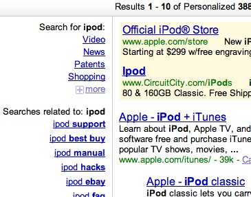 搜索导航其实更像是将关键词建议实时带入了搜索结果检索上。比如上图,通过浏览不同的搜索建议,你可以轻松的了解到关于iPod的一切。