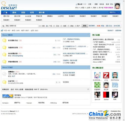 站长之家(chinaz.com)8月19日报道:Discuz! X 1.5于8月6日的时候开始进行内侧(测试站点www.discuz.org),距离今天近半个月。据官方消息称,明天Discuz! X1.5将对外公开测试。