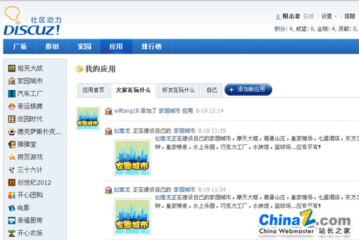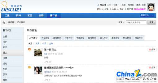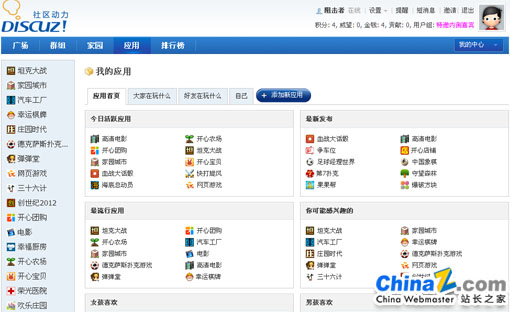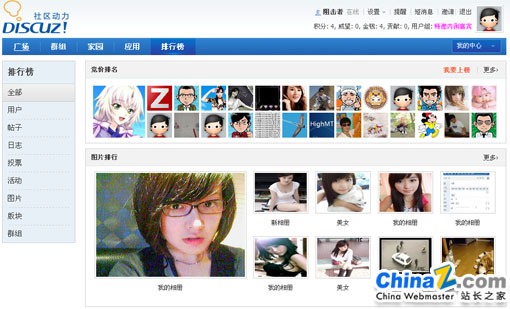 目前官方测试站一直在封闭中,站长之家作为特邀内测嘉宾,也一直在关注X1.5的最新动态。从内测版本看,已经完成的功能有:论坛、群组、家园、应用、排行榜。以前一些丢失的功能,如排行榜功能在新版本中也回来了。不过内侧版本中,门户、频道暂未开放测试。官方称代码在上月中旬就全部完成,正在页面嵌套中。