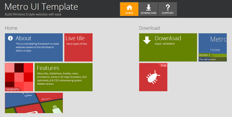 Metro UI CSS是一个非常完整的、用于创建Metro风格网站的框架。使用LESS创建,并且拥有网格系统、排版样式、表格、按钮和图片。同时也拥有内建的JavaScript组件,帮助你生成瓷贴、菜单、边栏、进度条、提示等等。