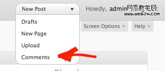 WordPress后台最上方有一个可以快速进入某些功能的下拉式菜单,WordPress在这个下拉式菜单里默认列出的选项包括“编辑新文章”、“评论”、“新页面”等。