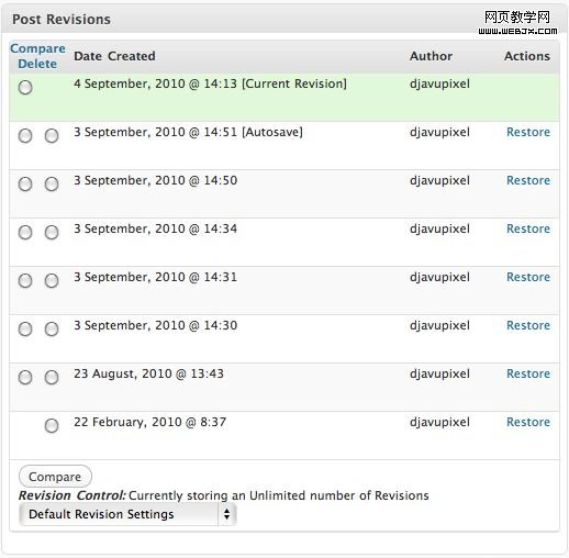 Revision Control插件允许用户更好的控制一篇页面/文章允许保存的修订版次数,节省存储空间。