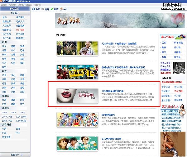 风行定制的影视专题则都在“热门专题”分类之中,点击主界面左侧“热门专题”之后,风行历年来制作的专题索引就会显示于右侧,最新专题自然是排列在最上面。笔者一眼就看到了想要的美剧专题-当季新播美剧快速扫描(图2)。
