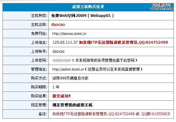 免费空间申请地址:http://www.botol.cn