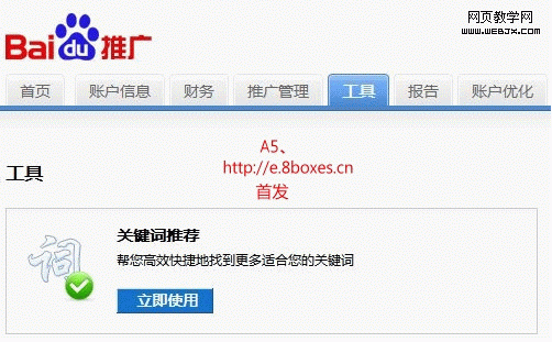 前面我们已经规划好了网站的栏目和目标(采集大量长尾关键词文章)。那么如何找到优质的长尾关键词呢?对于大部分做SEO的朋友在做百度优化,选择关键词的时候,通常会借鉴百度指数,百度相关搜索。但是这些方法获得的长尾关键词少,而最好的工具,莫过于百度工具中的关键词推荐工具(可惜你必须拥有百度竞价后台管理权限,你才可以使用这个后台工具)。下面我就粗略的展示一下百度关键字推荐工具的页面和使用。