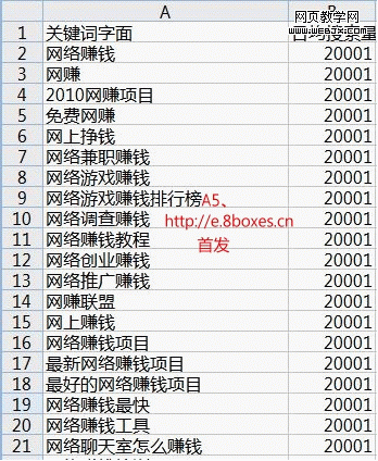 4)使用EXCEL的筛选功能排序,你就可以指导这些关键词点击量大排序情况,其中经常会有被人忽视的点击量很高的关键词。例如,你可能想象不到“网络聊天室怎么赚钱”这个关键词有这么高的点击量吧。
