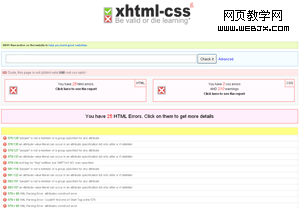 xhtml-css.com:xhtml-css.com可以快速的浏览一个站点,来验证HTML和CSS。其提供的服务包括列出所有错误以及你需要关注的可疑告警,以及关于问题性质的详细描述。你也可以使用一些更高级的选项来设置HTML编码,设置CSS的场景和适用的媒体。该站点还提供一个名叫BeValid的Firefox插件,它可以更快的帮你验证正在访问的URL。