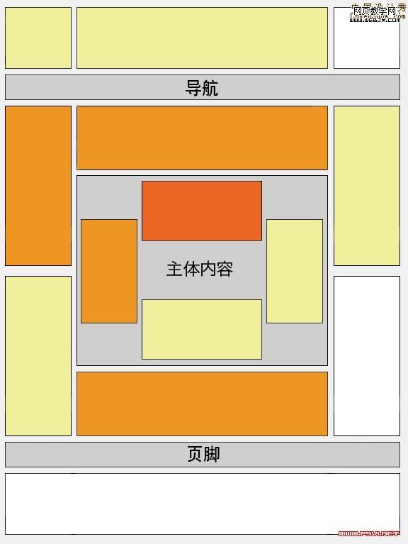 某些位置比其他位置更有助于取得成功。 本 "热图" 以一个网页布局样例说明这些理想位置。 颜色是从深橙色(最佳效果)渐褪为淡黄色(最差效果)。在其他条件都相同的情况下,折页线以上位置要比折页线以下位置更有助于取得较好效果。 通常,在丰富内容和导航标志附近放置广告的效果较好,因为用户会注意网页的这些。