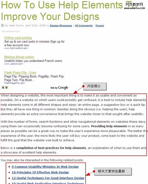 图2:Smashing Magazine的文章,一开始除了有内容简介,还会摆出相关文章。