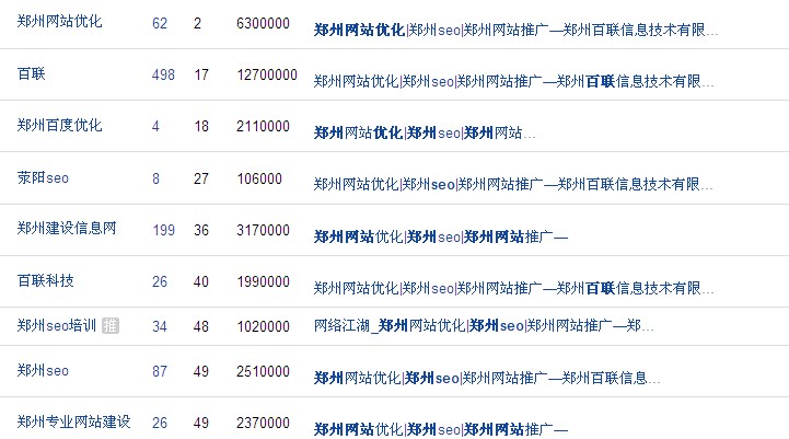 上图可以显示出在早上的时候,我站的核心关键词——郑州网站优化是排在百度第二位的,其余又指出的关键词,也均有排名,网站排名一切正常,此时网站的情况是打不开:截止发文章的时候网站打开了但排名变化了了,如下:
