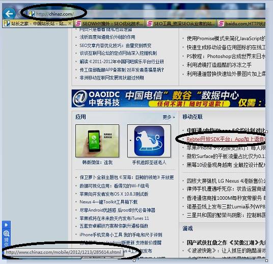 2.首页文章的路径都采用绝对值地址,如中国站长网的首页的文章都是采用加www的地址,这样一篇文章对应一个URL。