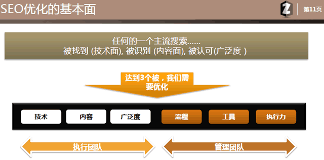 这个页面应该花一点时间讲清楚说明白,因为对于执行团队而言就是技术,内容和外链三把手,对于客户端的管理层面来讲就是要固定流程, 统一测量工具标准和提升团队的执行力。