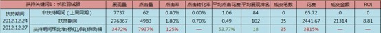 平均点击花费环比(与上周同期12.17-12.20相比)增幅36.36%(流量下降,竞争度不变导致);
