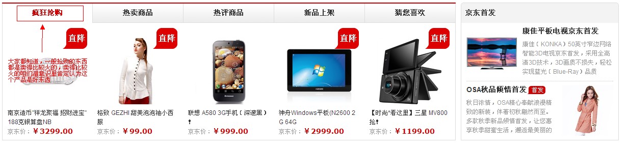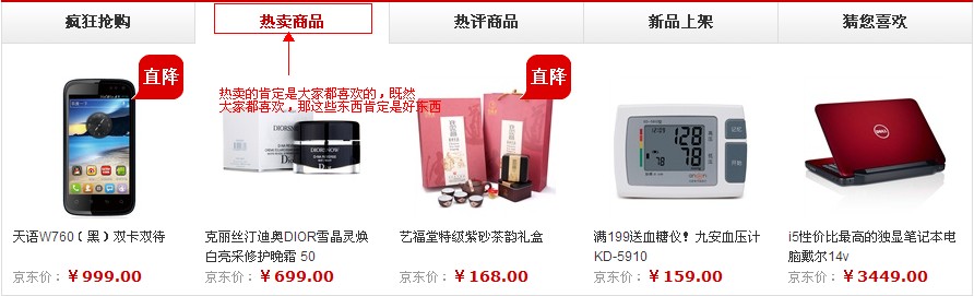 热卖商品:热卖的肯定是大家都喜欢的,既然大家都喜欢,那这些东西肯定是好东西,好东西当然能提高人的购买欲望