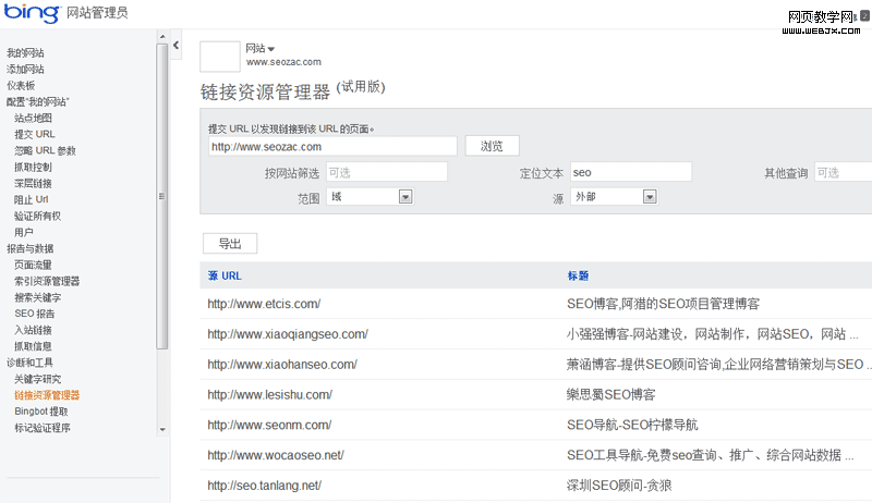 查询网站外链工具:Bing站长工具查询任何网站外链