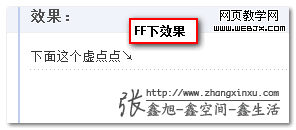 我博客首页的个人信息介绍处的虚点是使用背景图片实现的(考虑到IE6 dot边框跟dashed搞基,不同浏览器虚点间距差异等)。