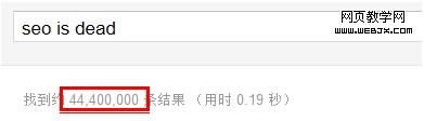 你会在很多地方听到太多的人对seo有不同的理解,至少我所到的版本有“seo末日论”“seo神秘论”“seo无耻论”等等,在谷歌搜索中输入“ seo is dead ”,搜索结果显示是44 400 000: