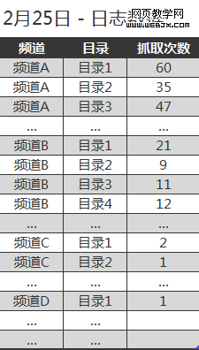 然后,我们统计了一下被抓得最频繁的频道A和频道B,目录页的收录率