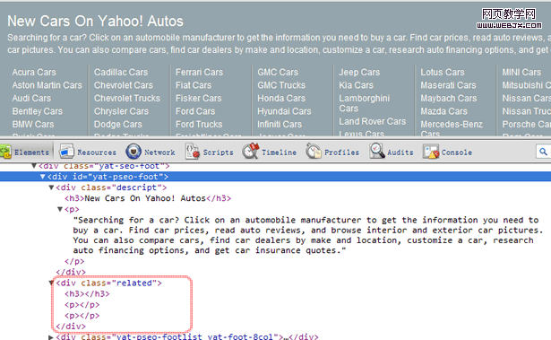 系列第二篇提到过,搜索引擎可能会用id及class的命名来判断某个区块是做什么用的,Yahoo Autos这个页面上如此做的目的就是告诉搜索引擎,这个区块是相关推荐区块。