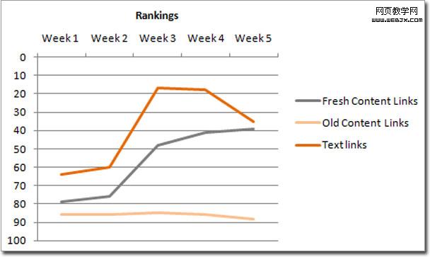 由于这些网站针对的是不同的关键词,而且文章营销没能准确掌握链接的数量,所以实验中把这些不同的链接建设模式放在一起对比并不中肯。