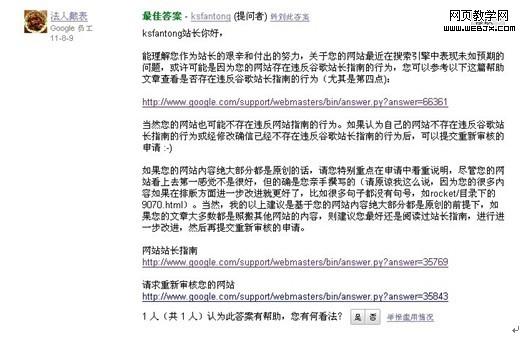 这里补充一下,其实谷歌最重要的也就是在这个方面,通过邮件的方式申请重新审核,一般的答复时间为1个星期即可,如果无法通过审核,谷歌公司还是会发送一份邮件给你,通知你的网站依旧无法通过他们的要求,会告诉让你自己再去按照他们的标准去修改自己的站点,谷歌的审核是人工的审核模式,他们会打开你的站点,然后打开你的文章进行人工的查看,我个人也是连续申请审核5、6次的样式,才最终通过了谷歌审核,在这个之前我也是到了谷歌的一个网站论坛去发帖寻找 他们的帮助和回复,也算是幸运,总算是有了一个他们的内部员工回复了我的帖子,并且对我的网站问题进行了答复,才真正有点指点迷津的味道,让我豁然开朗。