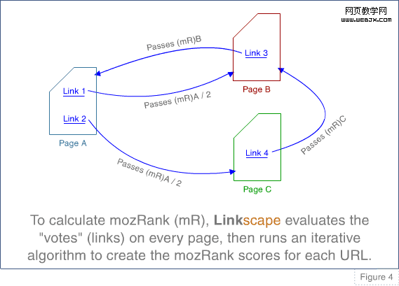 mozRank通过抓取互联网上的超链接,存储到自己的数据库中,然后根据这些链接直接的链接关系来判断某个网页的等级。影响mozRank的因素,一个是链接向这个页面的外链的数量,理论上来讲,获得的链接越多,则mozRank越高,另一个影响因素是链接源(即链向这个页面的网页)的权重,权重是个很抽象的东西,但是打个比方就很容易理解了,比如一个普通博客链向你的网页肯定不如新浪、百度这种“大”网站(权重高的网站)链向你的页面。