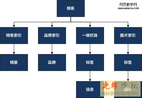 信息索引 信息就发布在网站的1级栏目和栏目下的关键字分类中,一级栏目的列表页同时有一级栏目的博客和图片的链接,标签列表页面则有同一标签的图片,博客,帖子的链接,内容页面只有相关标签博客的链接。
