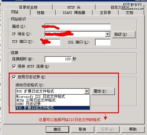 点击属性可以知道网站IIS日志文件是在那个目录文件里!