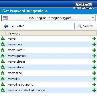 2. 选择“谷歌推荐”选项, 输入你主要推广的关键词,不停的重复点击(一定要不停重复点击),然后你就会得到谷歌推荐的关键词列表。