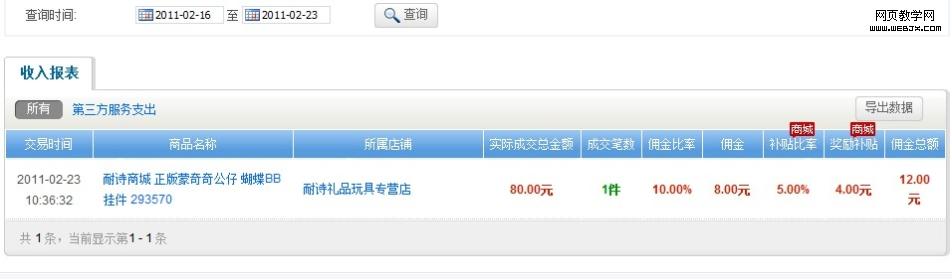 这时我开心急了,这么多天,开始有收入了,就算是一毛我也开心啊~ ~。这是给我一个好开头阿,需然对你们来说很少,但是对我来说意义重大啊。这给我 不单单是利益,这是给我一个好的信心,一个好的开头,使我更加想走下去了,我相信有了第一订单 后面会有更多的订单的!