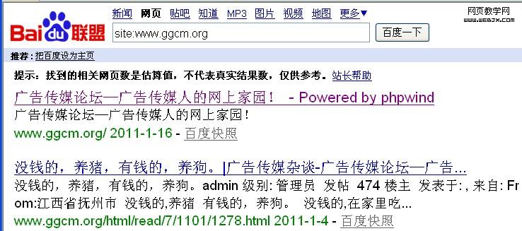 因为我这个广告传媒论坛已经做了三个多月了,百度也收录了几十个页面了。我认为百度一定会把我这个主域名判断为第一权重的域名,新绑定的二级域名会判断为副域名不给予什么权重,所以当时也就没放在心上,也就没有做301重定向设置。绑定这个二级域名后,我就利用这个二级域名到百度知道发了十几个长尾关键词的问答并带上这个二级域名的链接,一个星期后这些问答都排到了百度搜索的前三位了。但是想不到问题也来了。