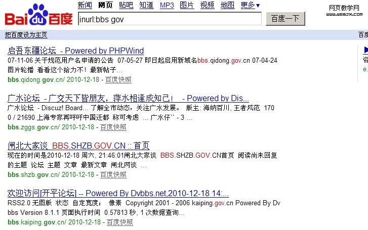 做为百度搜索引擎来说,它再怎么精确可能都无法帮我们删选一些检索的内容。最早我接触到搜索引擎高级指令是在一次要搜集论坛信息的时候用到的。大家都知道做SEO外链他是一会占一个非常大的比重,而且在外链、论坛资源中,要是能找到政府类的站,那真的可算是大收获。今天我也会把我当时的一些搜索手法分享出来。