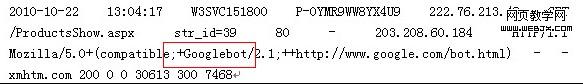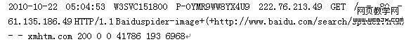 我们拿着IIS日志后可以用IIS日志分析工具去大概的去查一查IIS日志。一般工具都能查出有各种蜘蛛来到网站的总数,以及有没有失败,不会把各种的信息都给你。并不是工具分析没有出现失败的我们就不用一条一条看了,工具分析只是简单的告诉你有没有失败,没有失败当然是皆大欢喜了,但是来是一条一条的去分析。我们拿出这样子的一条信息来分析一下