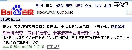 今天在A5再给大家分享一下自己如何让一个新站,当天提交搜索引擎,半小时内就被收录的。图片为证,快照是今天的。今天在群里和做SEO优先的朋友分享心得,不亦乐乎。一个朋友找我私聊,让我帮他做一下SEO优化规则。如果能快速被收录。因为我之前做过一个新站,快照是隔天收录的。当时就比较激动。那位朋友的站也是新的,刚上线的。是个机票预订的站。大家可以看一下,是个很简单的站。