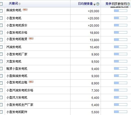 C:百度的竞价后台,说起百度的竞价后台,大家可能都会说,没做竞价,后台不能用,个人认为作为一个站长,那么您自己应该有一个自己的站,做个竞价也不是什么大投资,毕竟我们要用人家的东西。竞价后台的关键词推荐工具,可以大致的分析出大量的关键词,可以参考百度的日搜索量定位我们标题的关键词。以小型发电机为例,如下图: