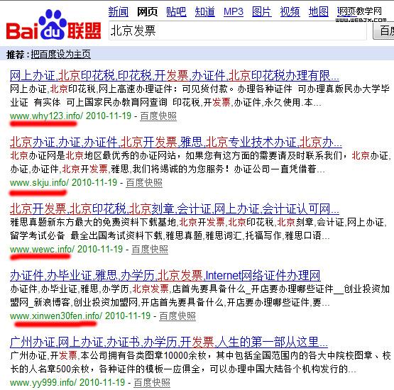 像句号师兄所说,站群,是几年前就存在的,一些大的门户不都是拥有站群?当然对于最近大家都比较关注的“左旋肉碱”,百度也仅采取紧急人工措施,并且进行算法调整,算法调整并不是说某一突发事件出来后,就能立即调的整,这方面也涉及到百度庞大的数据、以及数百条规则问题,例如关键词“北京发票”,当然我所观察到的还有很多这样的情况发生着,对于我个人来说,做了几年SEO,虽然我对百度的确没有好感,但不管是我个人,还是我自己的公司,百度也算是我衣食父母,大家也可以凭心而论,多少人在靠着百度吃饭?毕竟他完全有能力,有借口持续打压SEO,可从近两年来看,不管说是形势所逼还是其它原因,起码表面上百度对SEO逐渐是向友好的方向在发展。
