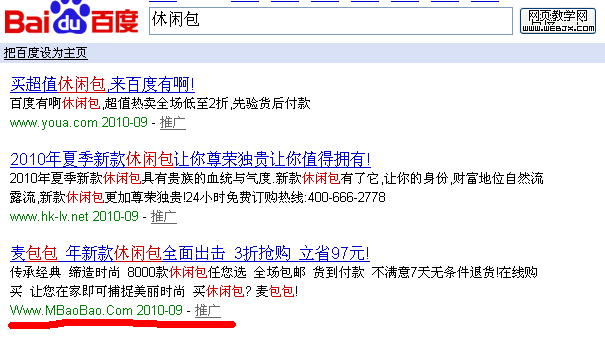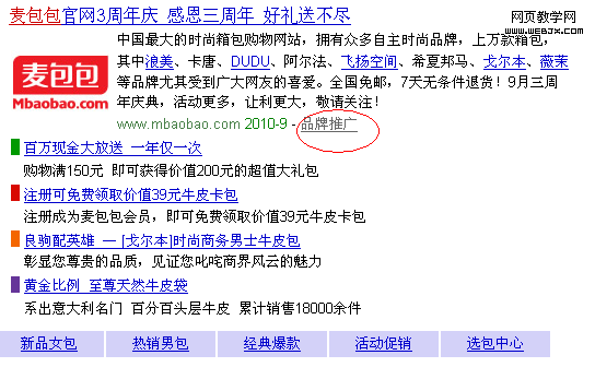 你说百度会处理他们吗?当然,麦包包外部商场还在很多门户站,都做有广告,(如163,迅雷,youku等)。真是遍地开花。