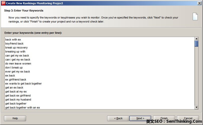 Rank Tracker,输入我们经过第二步后所剩余的关键词。